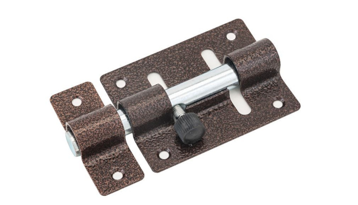 Засов накладной для деревянных и металлических дверей. Материал - сталь, полимерное покрытие. Габариты корпуса - 88х70 мм, 4 крепежных отверстия. Цилиндрический ригель диаметром 14 мм с вылетом 35 мм. В комплекте ответная планка 25х67 мм.